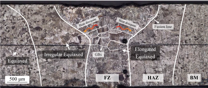 - Fusion zone characteristics including weld micro-hardness, microstructure (morphology and grain size), oxygen contamination, geometry, and porosity were measured and studied in detail.
