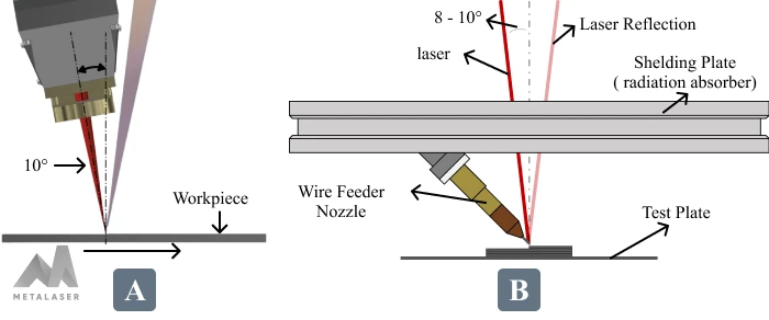 Normally, high-power laser heads are installed with a 6 to 10 degrees vertical tilt, as you can see in the Figure 3-A. This intentional tilt enhances the longevity of the optics by preventing the rebound of laser reflections. However, this approach will induce problems like the burnout demonstrated in Figure 2-B.